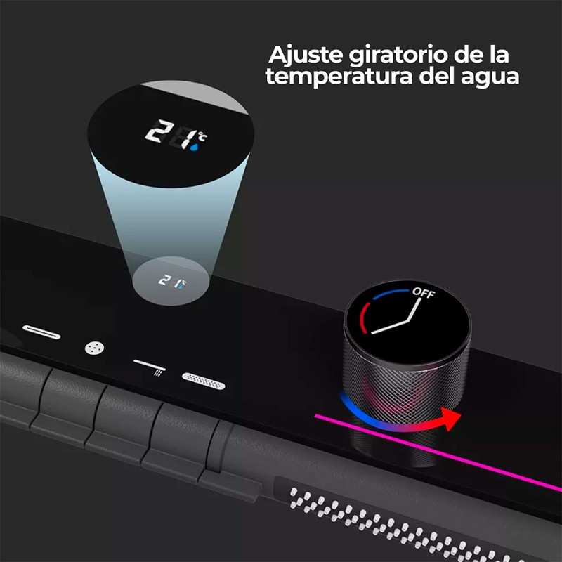 Teclas de control + perilla de desagüe